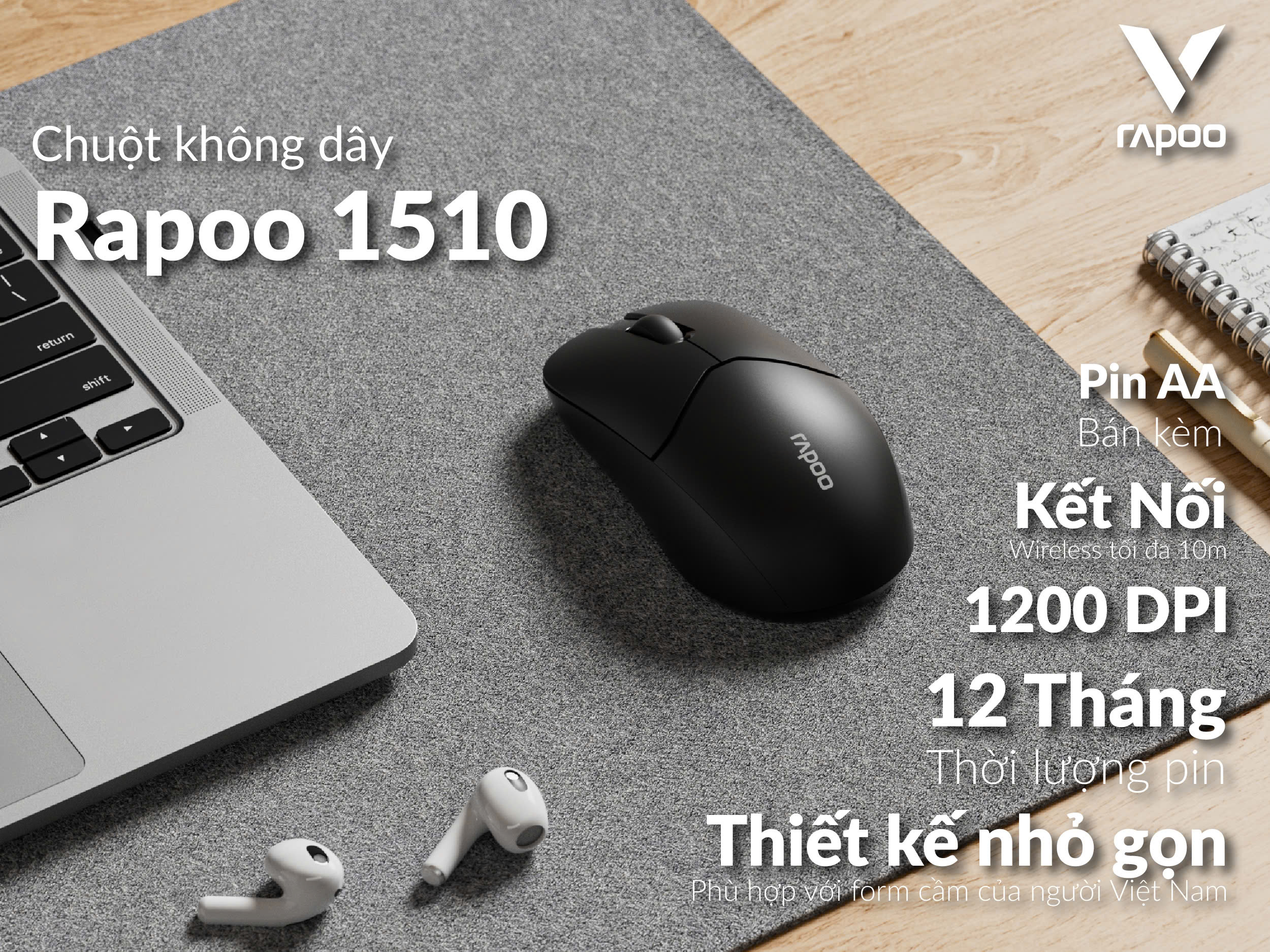 Thích thú với mẫu chuột máy tính Rapoo 1510 đẹp mắt, kết nối, sử dụng hiệu quả, giá rẻ, phù hợp cho đối tượng sinh viên, học sinh, dân văn phòng, giáo viên,…