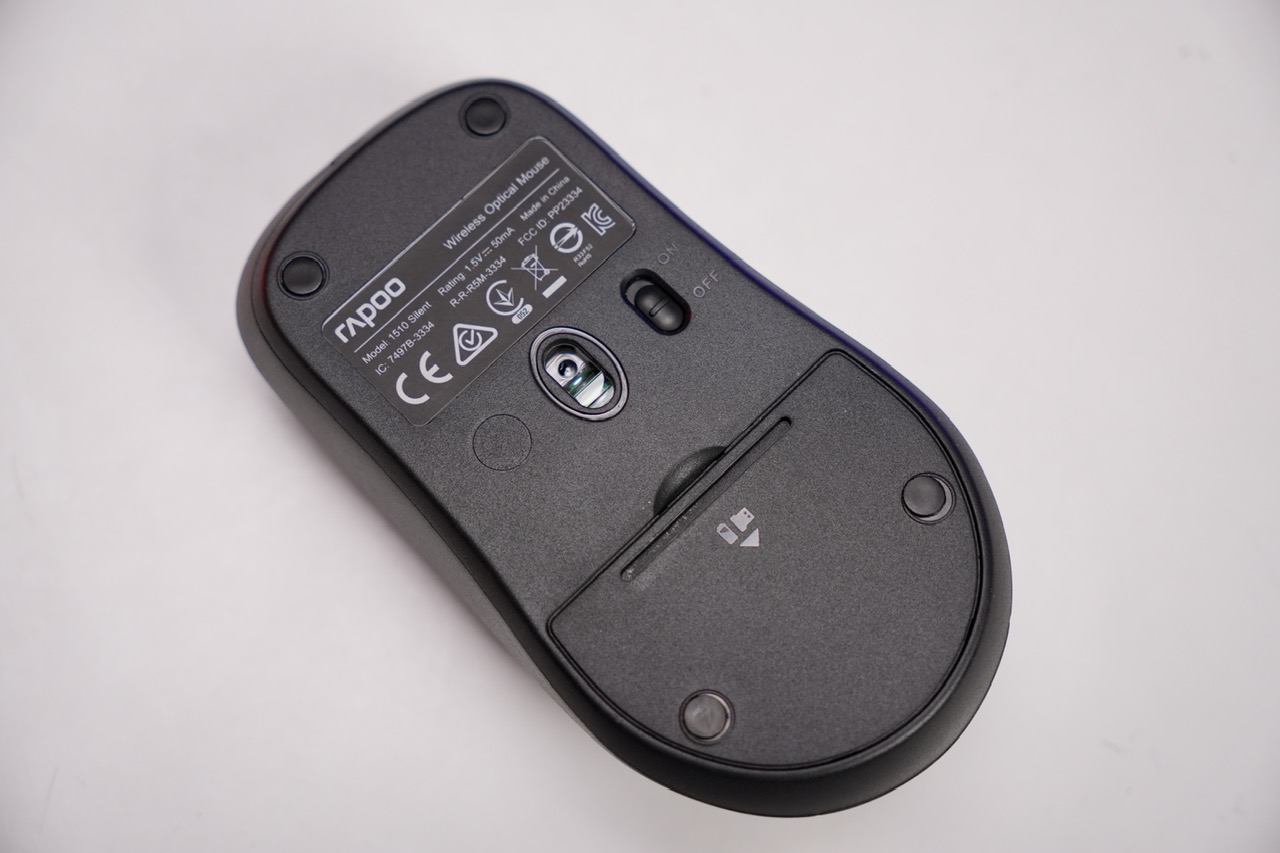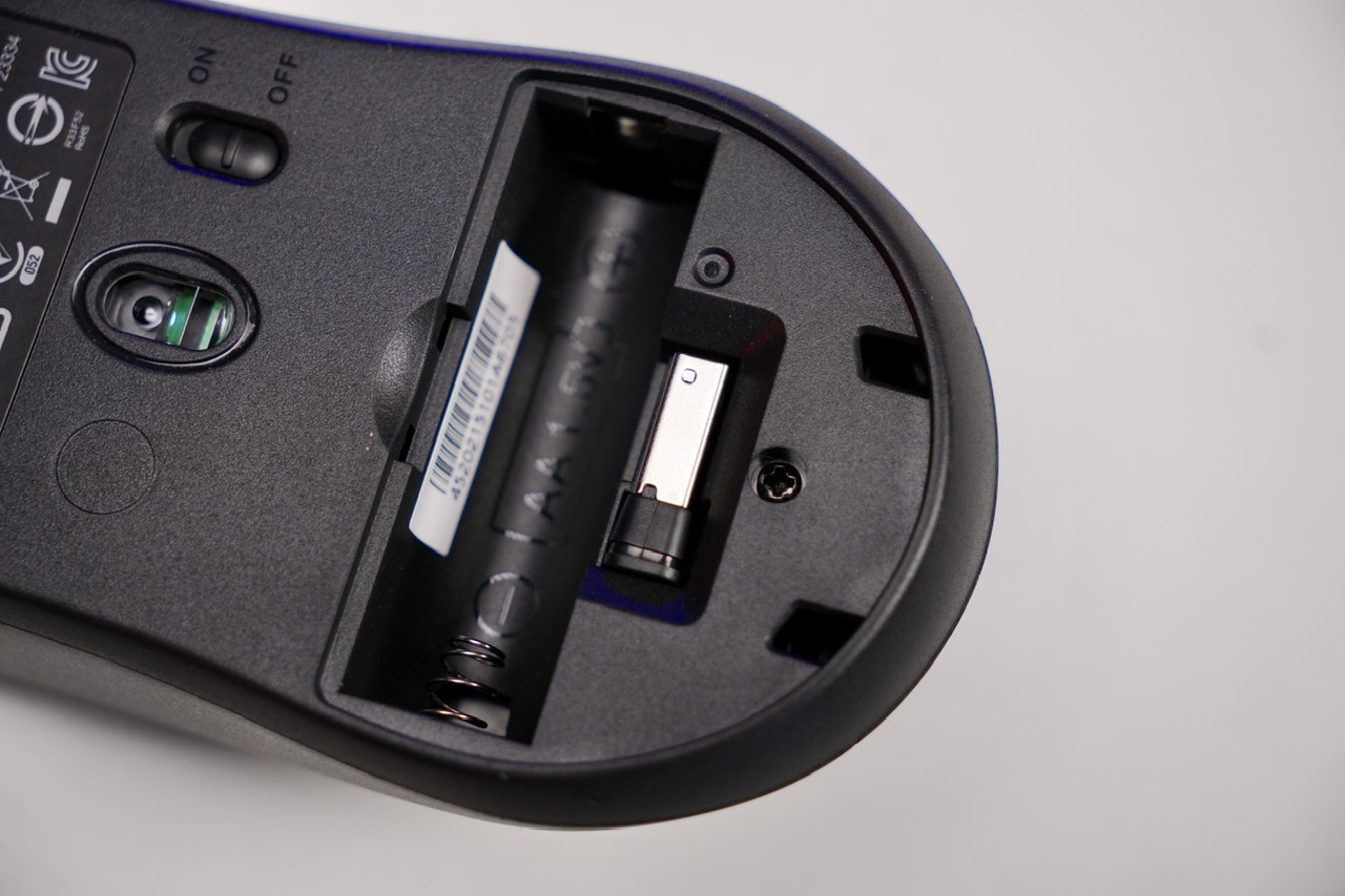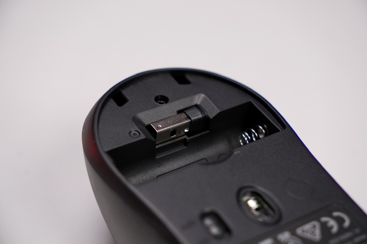 Ngăn chứa đầu thu USB tích hợp: Thiết kế khe cất giữ đầu thu USB dưới đáy chuột, giúp bảo quản và di chuyển thuận tiện.