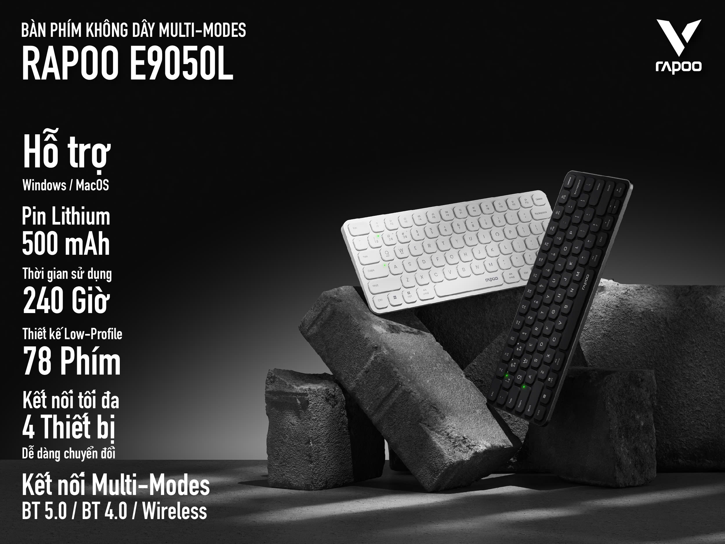 E9050L bàn phím không dây Rapoo tương thích tốt với các laptop, PC hệ điều hành Windows, MacOS.